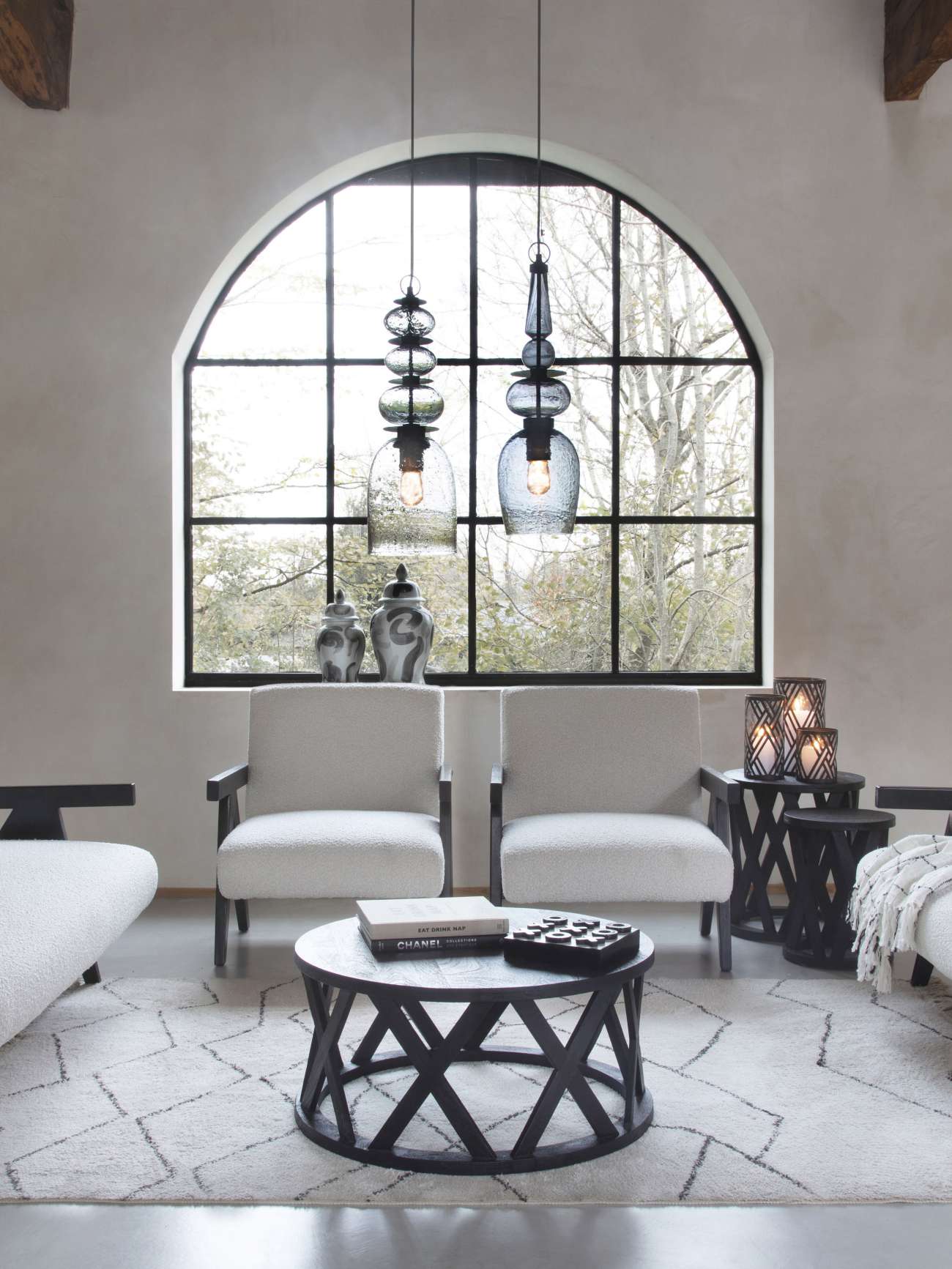 Handmade in India using traditional techniques, the Cali Coffee Table is made in sustainable solid Mango wood, with a black rustic sandblasted finish. It features timeless crisscross detailing which connects the top to the base. The Coffee Table has adjustable feet to ensure it sits straight on a variety of surfaces without scratching them. Matching Cali side tables available