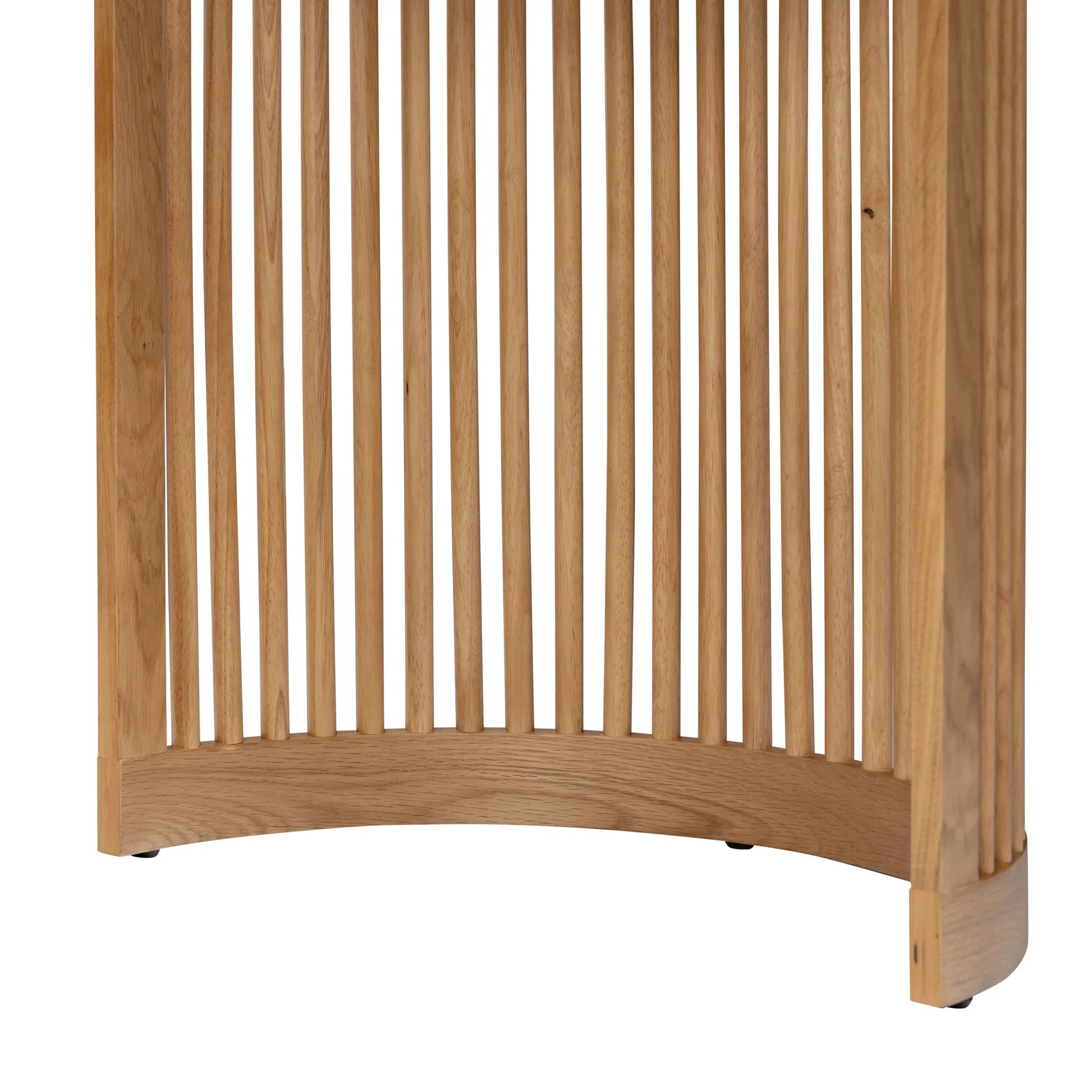 Straight slatted front contrasted with gentle curved edges. The slatted feature on the doors gives the design a lightness, a hint of texture and a distinguishing finish that will stand out in your living space. Beautifully simply gold handles bring the range to life while keeping the frame minimalist and streamlined.